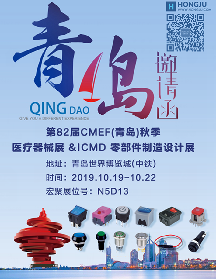 CMEF第82屆中國國際醫療器械(秋季)博覽會將于2019 年10月19日-22日在青島世界博覽城舉辦,展會將全面展出包括體外診斷、應急醫學救援及院前院內急救、骨科診療、醫用光學、醫用電子、醫用影像、移動醫療、醫院建設、醫療服務、智慧健康等國內外最新產品、技術及服務。HONGJU宏聚開關作為醫療器械配套供應商,應邀參加本次展會。宏聚開關將攜公司主打開關產品參加本次展會,主要參展產品有:船型翹板開關,按鈕開關,帶燈輕觸開關,金屬按鍵開關,AC電源插座和保險絲座系列等,歡迎新老客戶蒞臨指導參觀!!