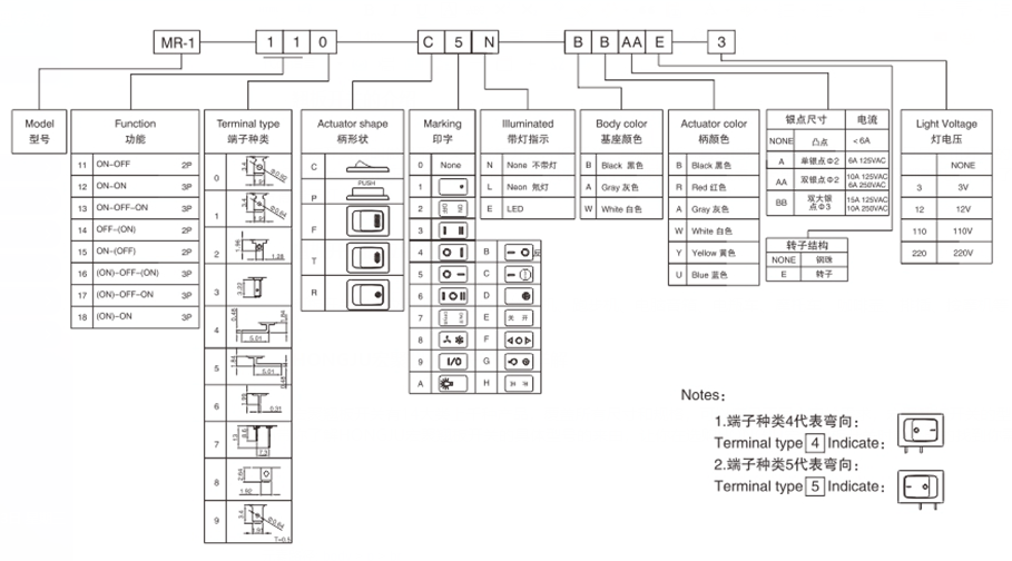 宏聚翹板開關有14大類上千種產品,覆蓋所有尺寸和規格,可以滿足不同客戶的需求,宏聚翹板開關的型號主要分為MR系列和R系列,下面帶你了解HONGJU宏聚翹板開關的具體型號的來由,讓你在選購HONGJU宏聚翹板開關時能及時的找到你需求的產品。