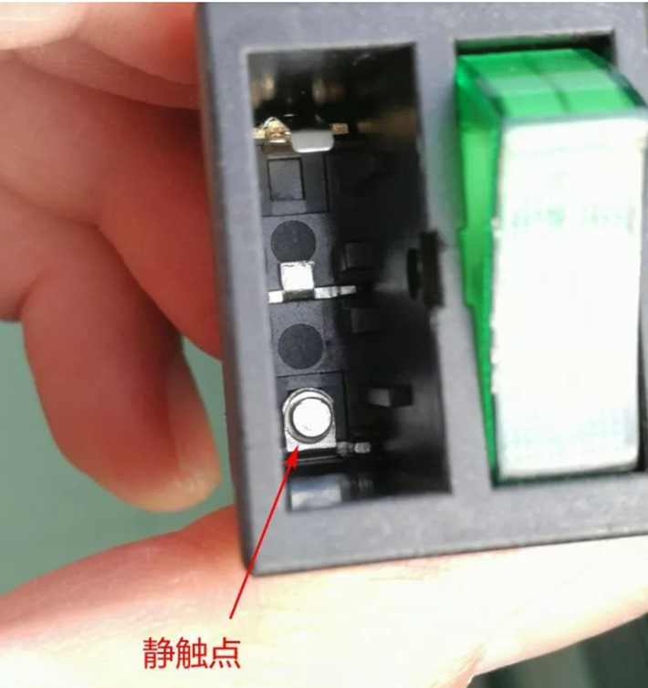 固定在開關內底部與管腳相連的是靜觸點。