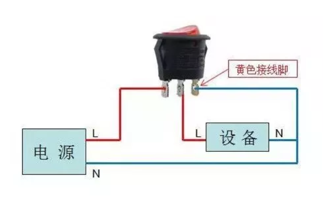 正確的接法是,電源的正極進入船型翹板開關的任意一接線柱都可以,然后從它的另一接線柱引出接入負載后再回到電源負極。