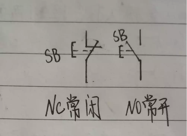 按鈕開關一般在實物上都會有常開常閉的標志,大家仔細觀察就可以知道其接線方法,如下圖: