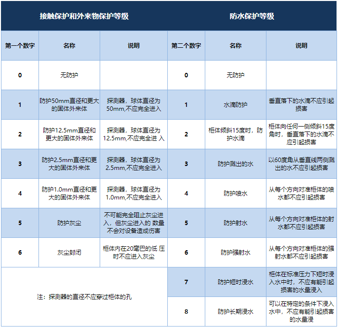 防護(hù)等級多以IP后跟隨兩個數(shù)字來表述,數(shù)字用來明確防護(hù)的等級。