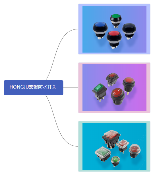 HONGJU宏聚開關(guān)作為行業(yè)領(lǐng)先的開關(guān)生產(chǎn)廠家,為了滿足日益增長的市場需求也在不斷的豐富自己開關(guān)產(chǎn)品的產(chǎn)品類型,目前HONGJU的防水開關(guān)包括:防水輕觸開關(guān),防水金屬按鈕開關(guān),防水翹板開關(guān),防水按鈕開關(guān),防水保險座產(chǎn)品。在HONGJU宏聚開關(guān)的防水系列中能達(dá)到IP防水等級要求的有PB08系列的按鍵開關(guān)和PB02系列的不銹鋼金屬開關(guān)。目前HONGJU開關(guān)在翹板船型開關(guān)上也在逐步研發(fā)硅膠套防水開關(guān),以前HONGJU宏聚的翹板船型開關(guān)防水都是同個PVC防水套實(shí)現(xiàn)的,新款翹板船型開關(guān)硅膠套比老款PVC防水套優(yōu)點(diǎn)有很多,1. 硅膠套防水開關(guān),防水性能更優(yōu)異,開關(guān)面板防水等級可以達(dá)到IP67。2. 觸摸手感更柔和,一般過去使用PVC防水開關(guān),手感差,硅膠防水套產(chǎn)品用戶體驗感更好。3. 硅膠產(chǎn)品更耐磨,耐酸堿性更好,并且適合用于戶外產(chǎn)品,防曬不易變色,防紫外線,不容易老化,使用壽命明顯高于PVC產(chǎn)品。4. 在開關(guān)防電弧泄露,防水防塵,電器等級有所提高,電器使用壽命有所提升。5. 材料環(huán)保,符合ROHS標(biāo)準(zhǔn)要求。